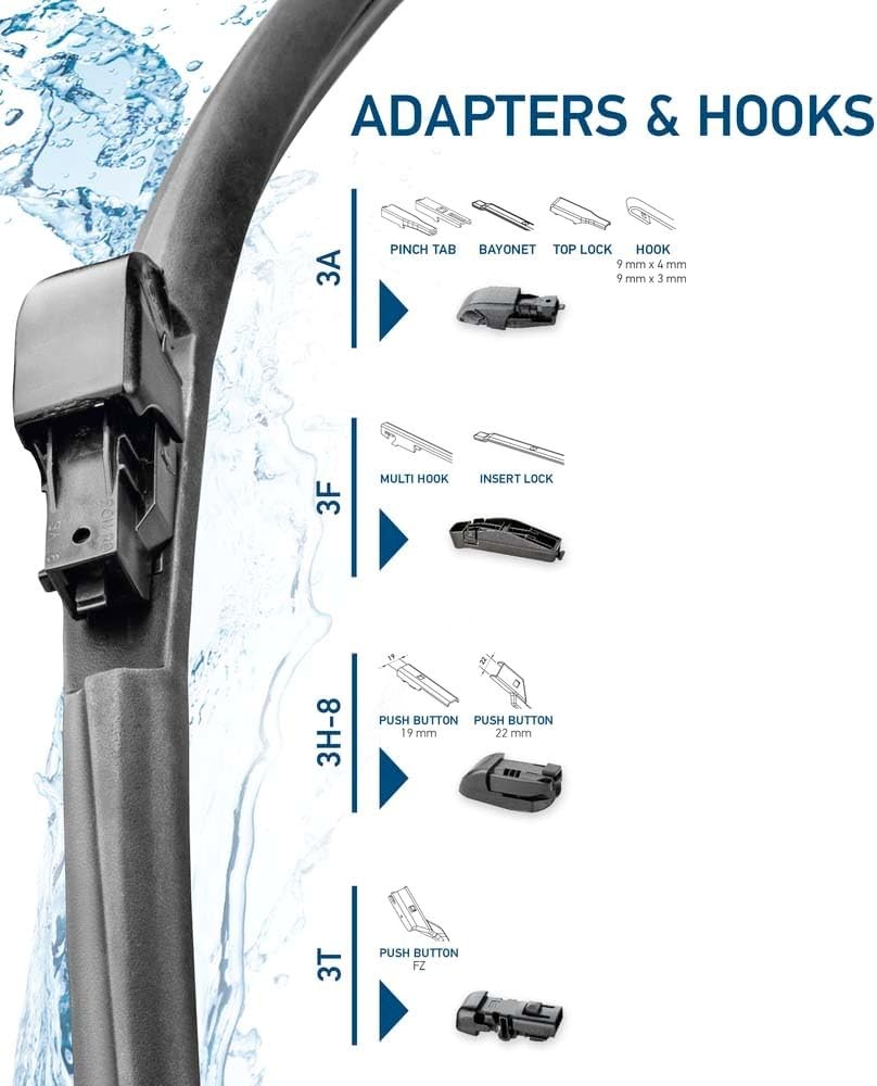 - Hella Cleantech flat bar wiper blade jointless with multi-adaptor for the windscreen
