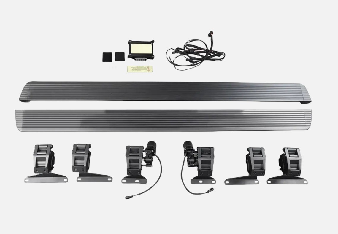 Electric Side step is made of durable aluminum material and powder coated. Connects to ECU for opening and closing command.
